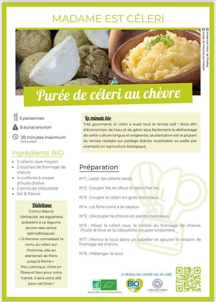 Recette : Purée de céleri au chèvre 18 mars Écrit par Alix de La Comble À table !!! Nous vous suggérons cette recette de mars, avec du céleri, légume phare de la saison. Alix de La Comble